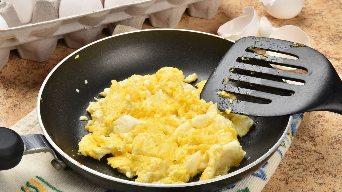Cook them low and slow. Stir often. You’ll get soft, fluffy eggs that stick with you all morning.