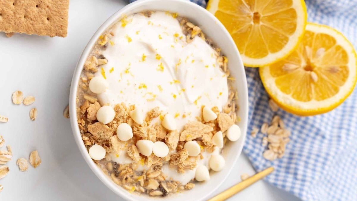 Mix oats with Greek yogurt, lemon juice, and a touch of honey. Let it sit overnight. The flavors blend together into something that tastes like lemon cheesecake.