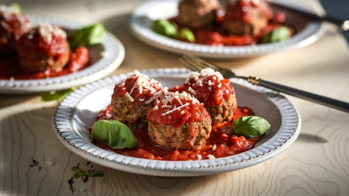 How to prep: Mix beef, breadcrumbs, egg, parmesan, and seasonings. Roll into golf-ball-sized meatballs. Bake on a sheet at 400°F for 20 minutes. Simmer in marinara for 10 minutes.