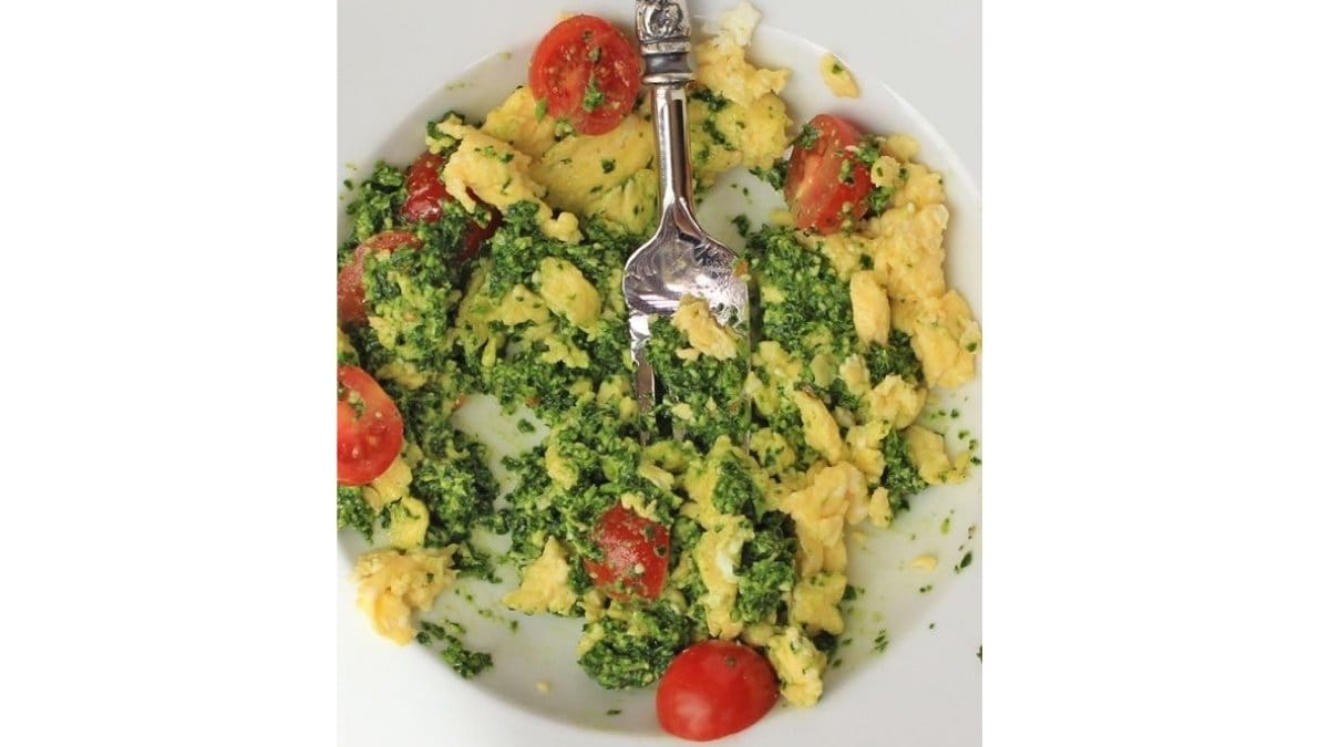 • Eggs + spinach + tomatoes cooked in olive oil (vitamin D, iron, vitamin C, healthy fats)