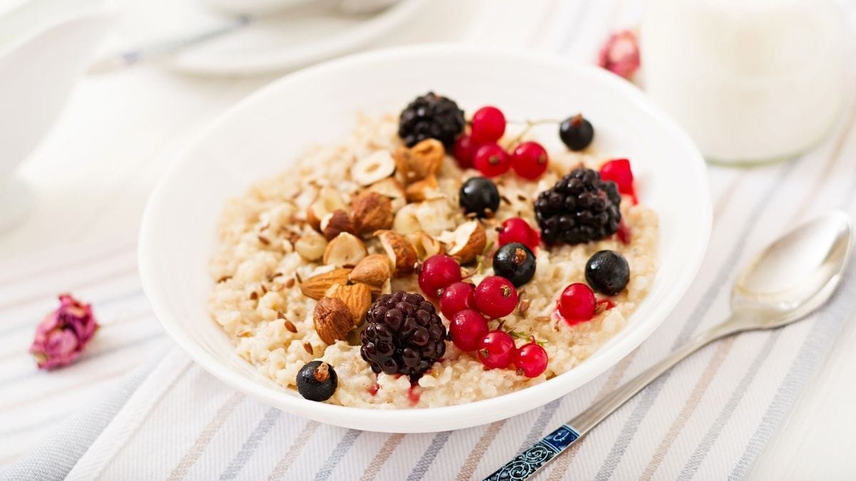 Oats contain beta-glucan fiber. This feeds good gut bacteria and lowers LDL cholesterol at the same time.