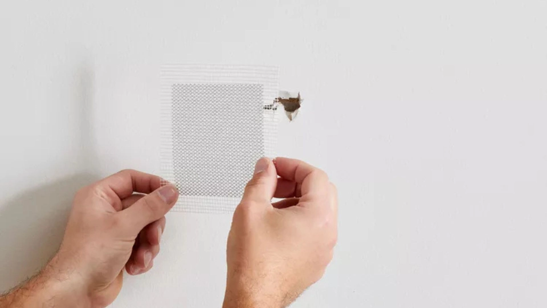 Medium holes need more steps but stay simple. Stick a self-adhesive mesh patch over the hole.