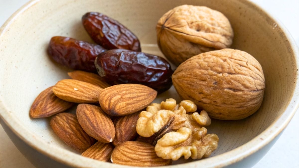 Your nightly recipe: 4 almonds + 2 walnut halves + 1-2 dates. But here’s the secret most people miss. Soak them first.