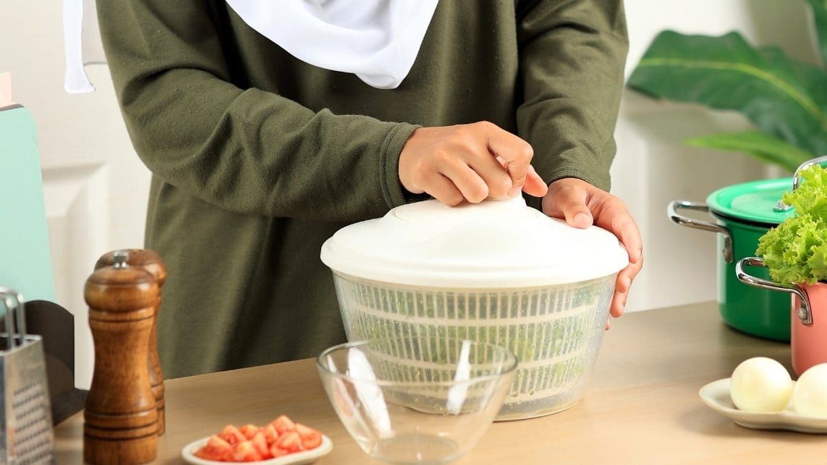 Wash your lettuce, spin it, then leave it in the spinner with the lid on. The basket lifts greens an inch off the bottom so moisture drips away. Your greens stay crisp for up to 10 days. The problem? It eats up fridge space.