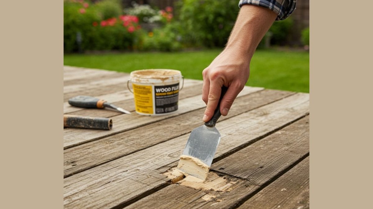 Small cracks need filling before winter arrives. Use an exterior wood filler for gaps less than a quarter-inch wide.