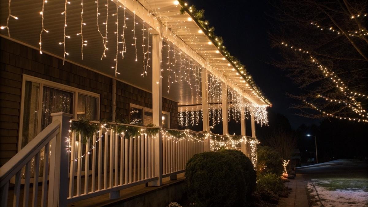 Forget the boring straight lines. This year, layer your icicle lights at different heights. Hang them from your roofline, then add a second row along your porch railing. The cascading effect looks incredible at night. Warm white LEDs give off that cozy glow instead of the harsh blue-white everyone’s moving away from. Trust me on this one. The layered look adds serious depth.