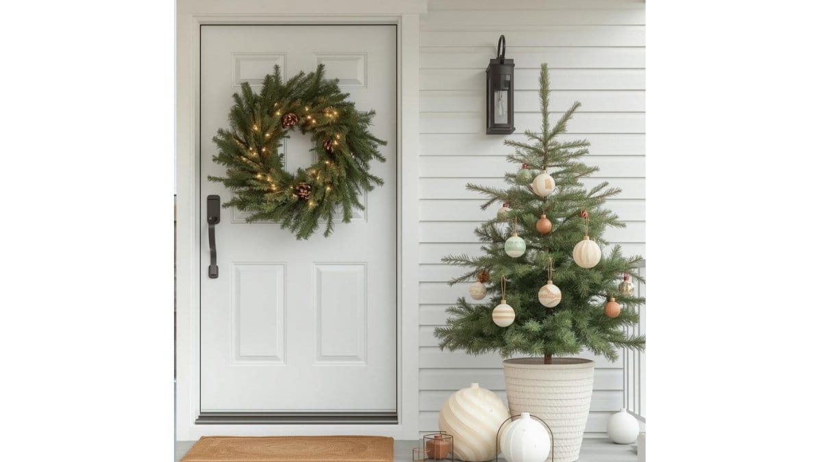 Less is more with this trending look. Choose one beautiful focal point for your porch. Maybe it’s a simple pine wreath with white lights. Or a single potted tree with handmade wooden ornaments. Add white or cream-colored accents. Skip the colorful chaos. This pared-back approach feels calming and elegant. It’s perfect if you love that Scandinavian aesthetic.