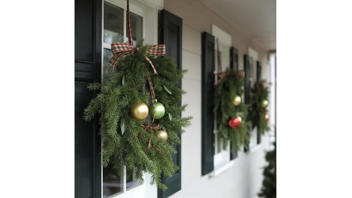 Hang simple evergreen swags above your outdoor windows. Tie them with ribbon and add a few ornaments. This easy touch makes your whole house look decorated from the outside. You can make these yourself with fresh greenery from the store. They typically last several weeks in cold weather. The natural, unstructured look fits 2025’s organic trend perfectly.