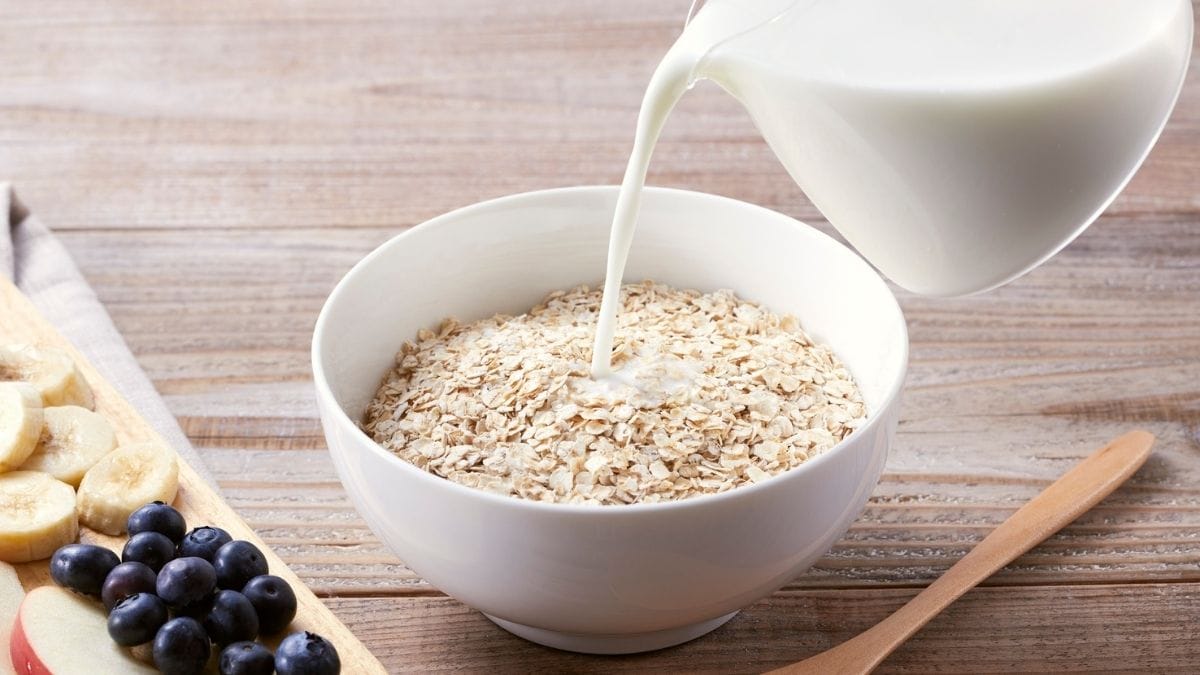 Here’s a simple example you can use tomorrow morning. Half a cup of dry oats cooked in low-fat milk, topped with one cup of mixed berries and one tablespoon of chia seeds. That single bowl gives you fiber, potassium, antioxidants, and omega-3s.