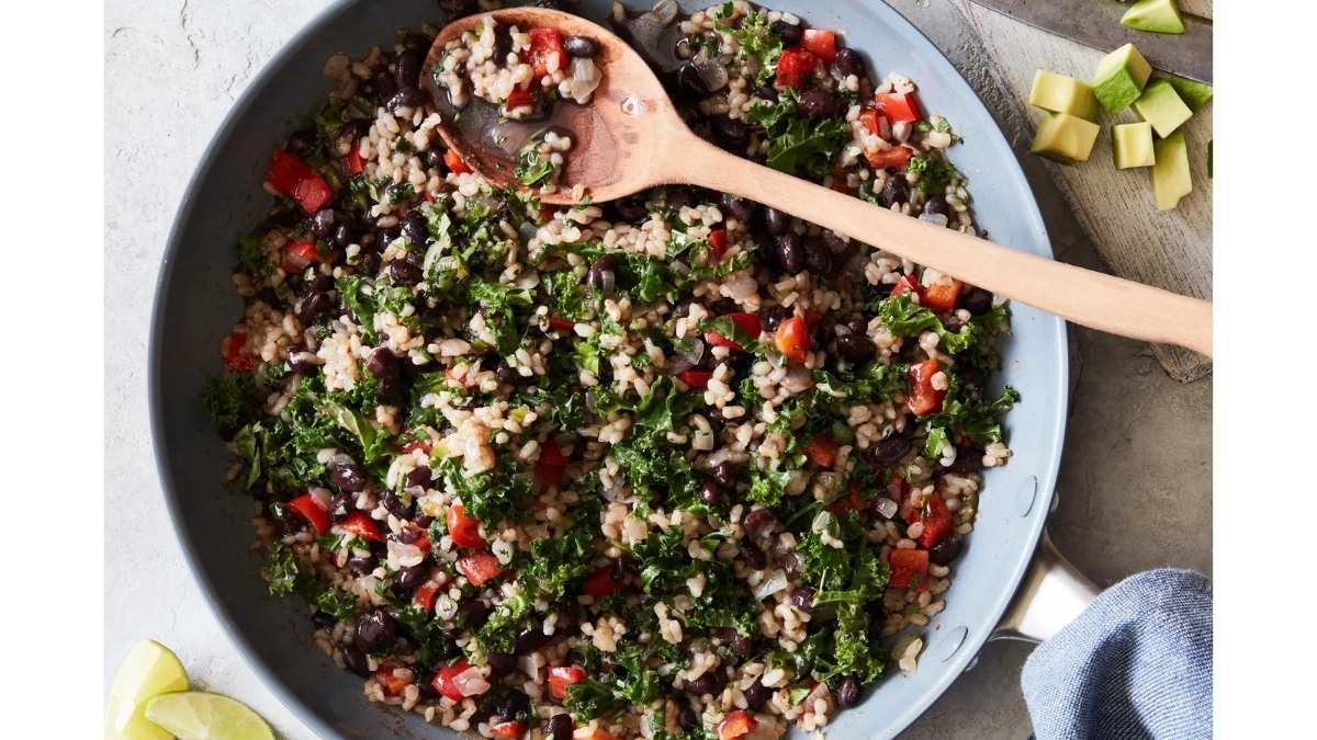 Mix cooked black beans with brown rice, sliced avocado, and fresh cilantro. Add one egg on top if you want extra protein.